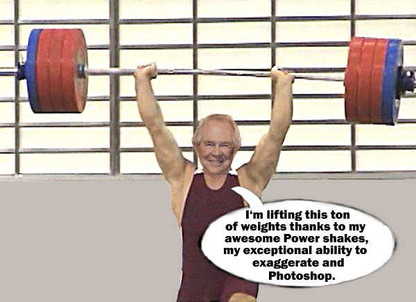 Here’s a photo-toon from our June 19, 2006 issue, which came out not long after the then 76 year old claimed he could leg press 2000 lbs. The power of christ (and excessive bullshitting) compels ye!
